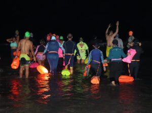 Disfrutan nadadores aventura nocturna en Playa Norte