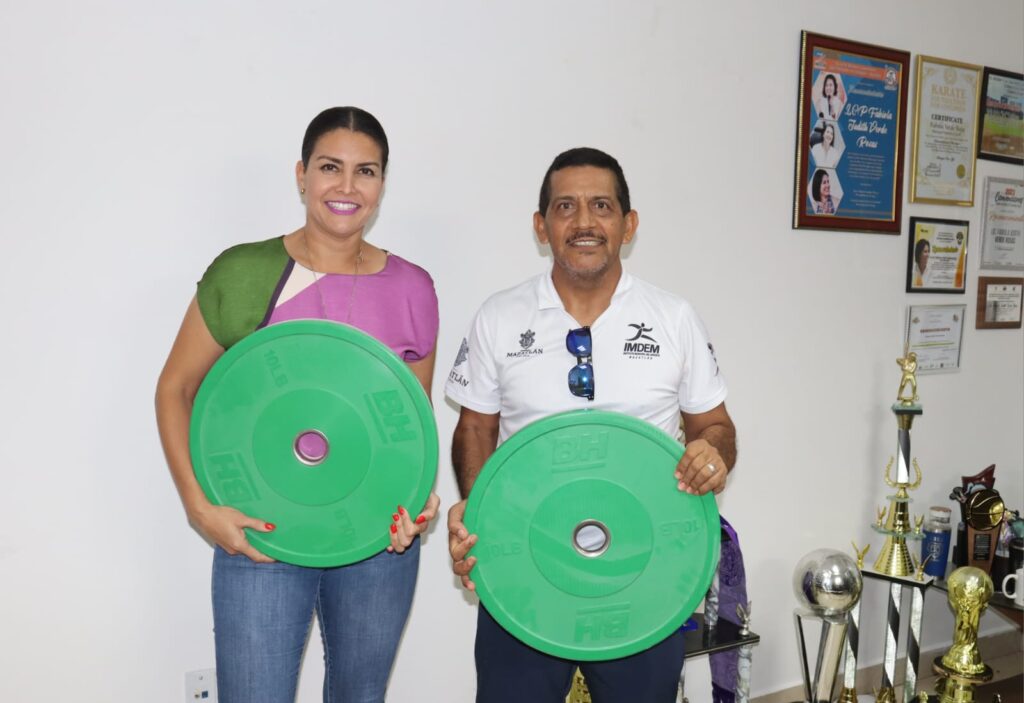 El entrenador, Juan Manuel Viera Campos, fue el encargado de recibir la entrega de balones medicinales, discos de cargas y barras olímpicas, de mano de la titular del Imdem, Fabiola Judith Verde Rosas, material que beneficiará a 40 atletas “patasalada” de alto rendimiento, quienes ya regresaron a entrenar tras un breve periodo de vacaciones.