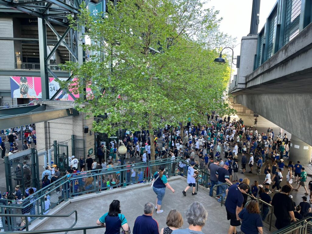 11:50 llegue a la estación y pintaba para un gran día, soleado pero fresco. Más la calidez y amabilidad que representa al ciudadano de Seattle, pregunté donde podía encontrar la sala de prensa para recoger mi credencial no se si 10 veces y después de andar de un lado a otro del estadio, al fin pude encontrar donde.