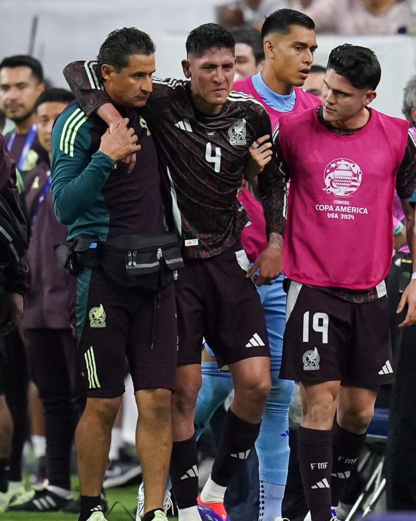 México sufrió la lesión de su capitán Edson Álvarez, el medio de contención hizo un pique en el medio del campo cuando se sintió de la pierna y debió abandonar el terreno de juego. Luis Romo fue quien entró por él.