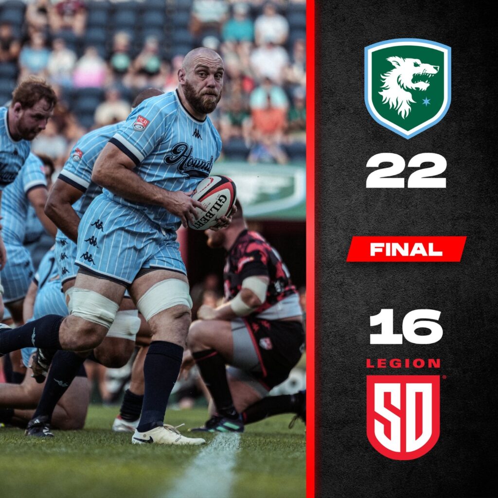 San Diego Legion Rugby vio cortada una racha de tres partidos ganados al hilo tras perder este Lunes ante Chicago Hounds en el cierre de la Semana 16 de la Temporada 2024 en la Major League Rugby de los Estados Unidos. El cuadro del Sur de California fue superado en el marcador 22-16 en la cancha del SeatGeek Stadium de Bridgeview, Illinois.