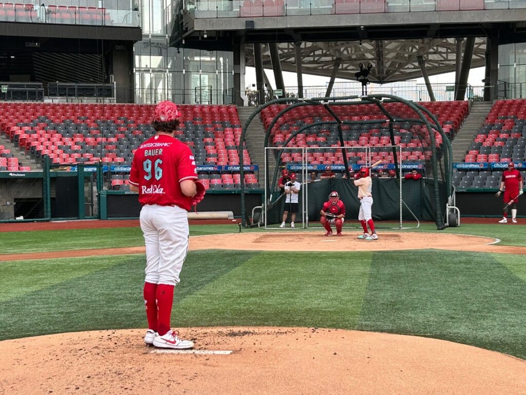 El pitcher Trevor Bauer regresó a la Ciudad de México para lanzar en una práctica de bateo en vivo en el Estadio Alfredo Harp Helú, y con ello confirmó que está listo para reincorporarse a la rotación abridora de los Diablos Rojos del México para la Serie de Zona de los playoffs de la Liga Mexicana de Beisbol (LMB).